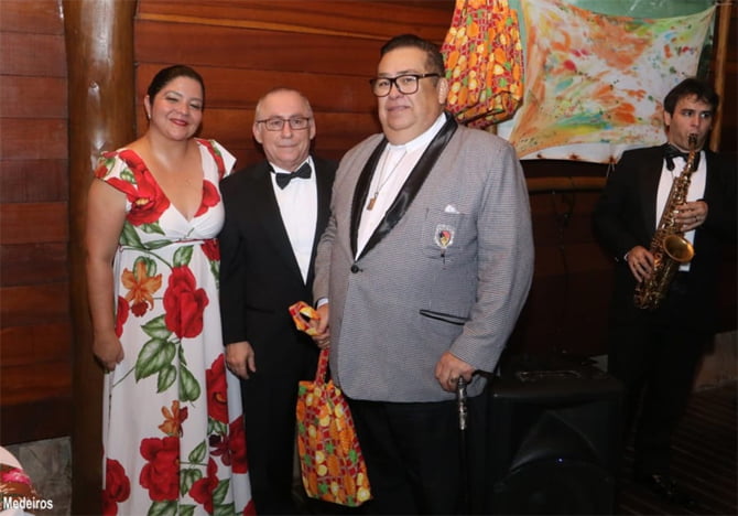 Viviane Guimarães, Sergio Boffa Pedro e o colunista social Toinho Silveira no Praia Bonita (Foto: Elias Medeiros)