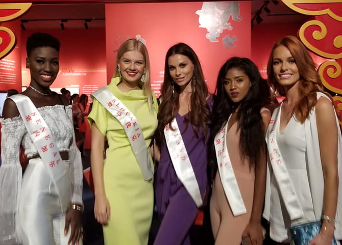 Misses Senegal Aissatu Filly, Eslováquia Lara Kalanj, Polônia Agata Biernat, Etiopia Soliyana Abaynek e França Maeva Coucket disputaram o Miss Mundo (Foto: Concurso)