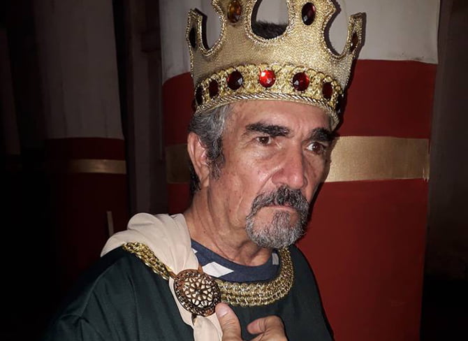 O animador cultural Sergio Gusmmão vive o papel de Herodes na Paixão de Cristo do Recife, no Marco Zero (Foto: Face)