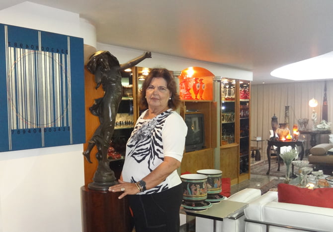 A antiquária Vera Costa diante desta maravilhosa obra de arte (Foto: Fernando Machado)