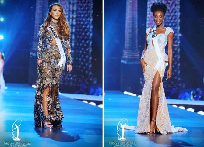 Eva Colas da França e Akpene Diata Hoggar de Gana na passarela do Miss Universo de 2018 (Fotos: Concurso)