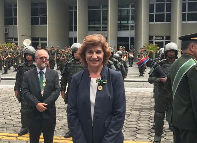 A diva da imprensa Jô Mazzarolo recebeu, quarta-feira, a Medalha do Exército (Foto: Instagram)