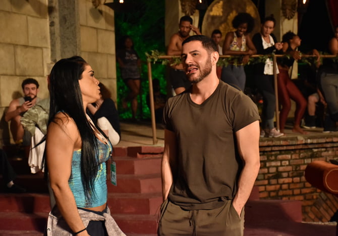 Rafaella Carvalho em conversa com Ricardo Tozzi antes do espetáculo da Paixão de Cristo de Nova Jerusalém (Foto: Felipe Souto Maior)