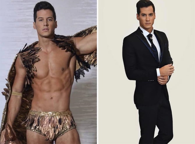 Mister Model International de 2018, José Manuel Alcade, de traje típico e terno (Fotos: Concurso)