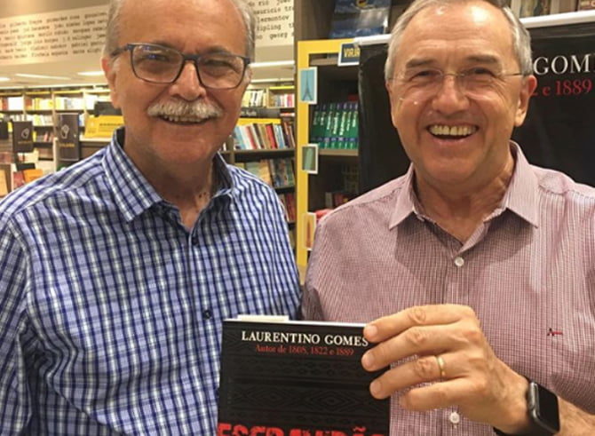 No lançamento do livro Escravidão Girley Brazileiro e o autor Laurentino Gomes (Foto: Instagram)
