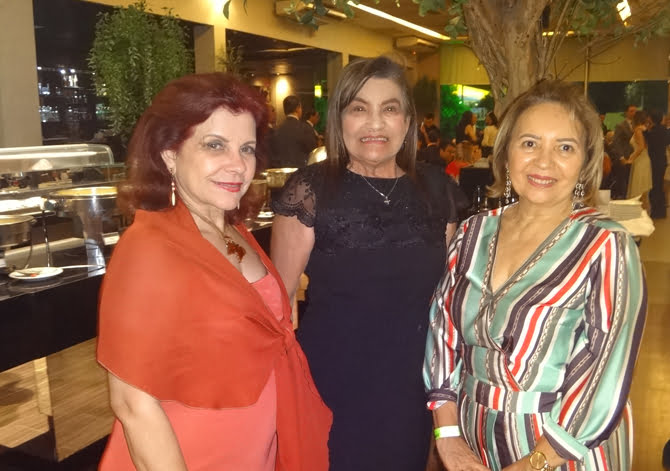 No jantar do novo presidente do TJPE, Nara Saraiva, Edina Correia e Neide Barros (Foto: Fernando Machado)