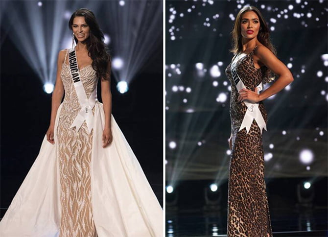 As misses Michigan Alyse Madej e Minnesota Cat Stanley na passarela do Miss Estados Unidos de 2019 (Fotos: Concurso)