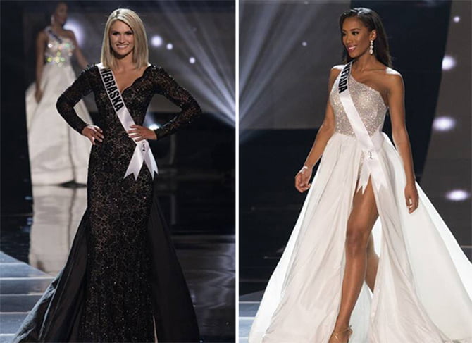Miss Nebraska Lex Najarian e Miss Nevada Tianna Tuamoheloa na passarela do Miss Estados Unidos de 2019 (Fotos: Concurso)