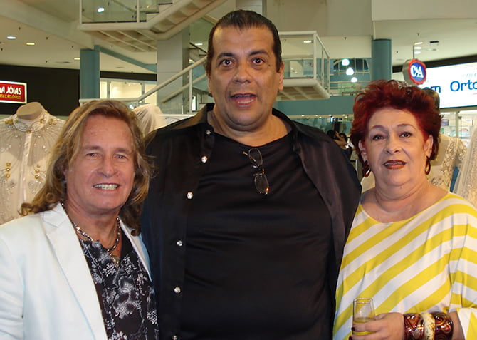 Os figurinistas Ricardo de Castro e Paulo Carvalho com a senhora Cristina Victor (Foto: Fernando Machado)
