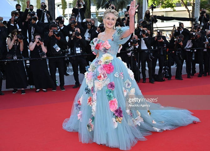 A atriz Sharon Stone no red carpet de Cannes by Dolce&Gabbana (Foto: Getty)