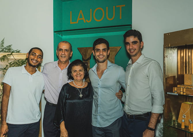 Roberto Nóbrega e Lourdinha Oliveira com os filhos João Gabriel, Arthur e Oscar no lançamento da LAJOUT (Foto: Fernando Machado)