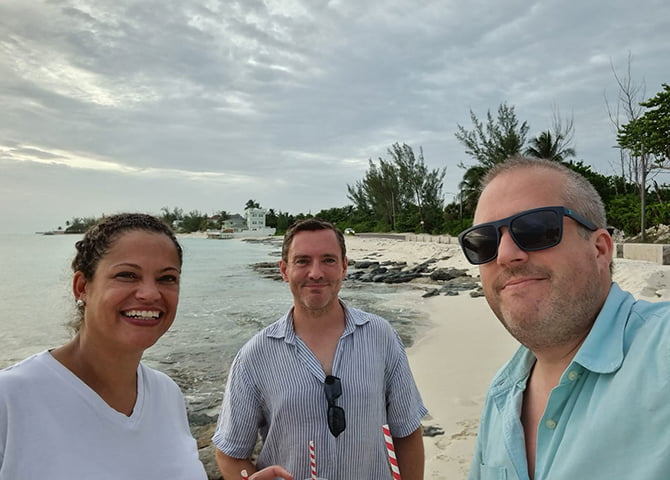A ex-cônsul dos EUA no Nordeste Usha Pitts, o marido Paul Nicklin e o ex-cônsul inglês no Recife Gareth Moore em Nassau (Foto: Face)