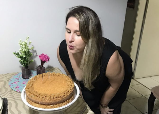 A jornalista Ana Luiza Accioly soprando as velinhas no seu niver (Foto: Face)