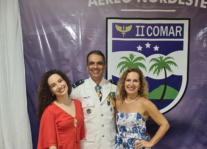 O brigadeiro Cesar Faria Guimarães e Taciana Moury com a filha Julia na solenidade do Dia do Aviador (Foto: Instagram)