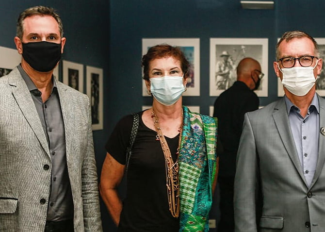 O cônsul geral da França, Hugues Fantou foi prestigiar o vernissage de Edmond Dantos com Rinaldo Carvalho e a diretor ado MEPE Margot Monteiro (Foto: Divulgação)