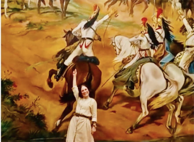 A notável atriz Regina Duarte diante uma obra da Independência do Brasil (Foto: Face)