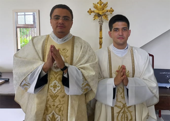 Os mais novos padres de Pernambuco: Weslley de Souza Silva e Arthur Barza (Foto: Misa Lilioso)