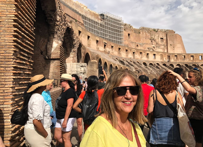 A executiva Elisa Castro que retorna hoje ao Recife, from Itália, posando no Coliseu (Foto: Instagram)