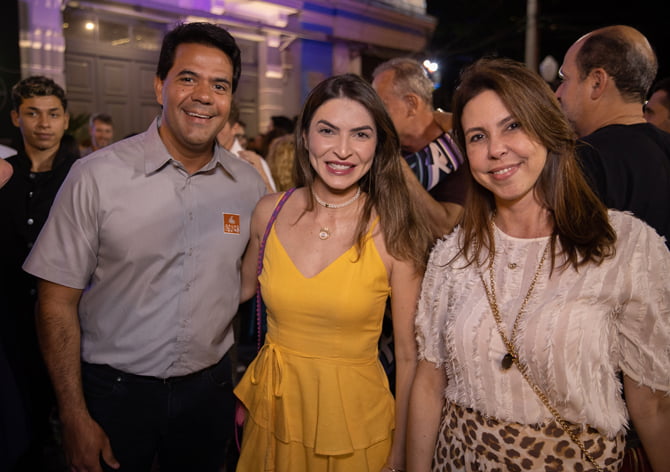 Alan Souza, Maria Eduarda Vasconcelos e Magaly Marinho representando o Grupo Iquine na inauguração da Casa Zero (Foto: Luiz Fabiano)