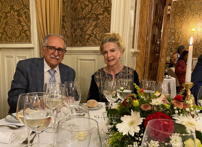 Os escritores Melchiades Montenegro e Valdivia Beauchamp, radicada em Nova York, na homenagem ao pernambucano, no Grêmio Liteário de Lisboa, em Portugal (Foto: Face)