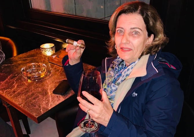 A médica Barbara Machado fumando charuto em Buenos Aires (Foto: Face)