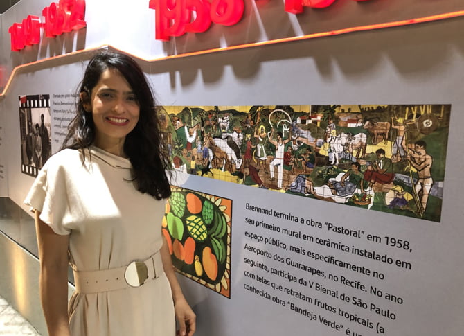 A bancária Roberta Leite Maia na reinauguração do mural A Batalha dos Guararapes, na Agencia Select do Santander, em Boa Viagem (Foto: Fernando Machado)