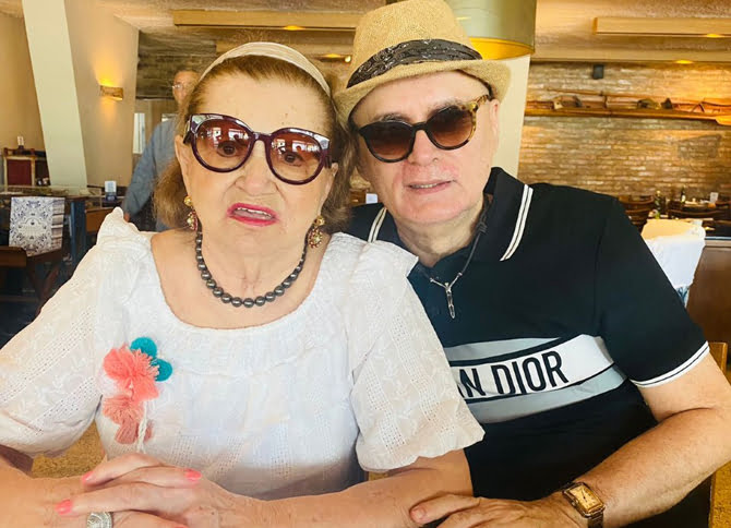 Dona Ilcima que aniversariou semana passada, com o filho Marcos Rolim (Foto: Divulgação)
