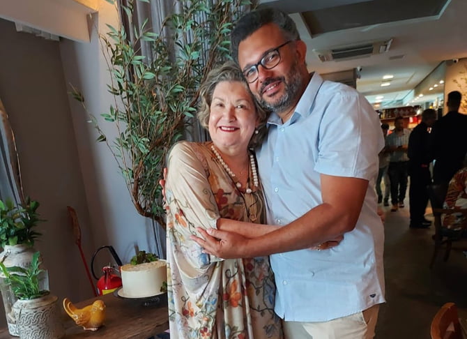 A aniversariante Cristina Vita e o gerente do Black Angus, Marcos Nascimento (Foto: Face)