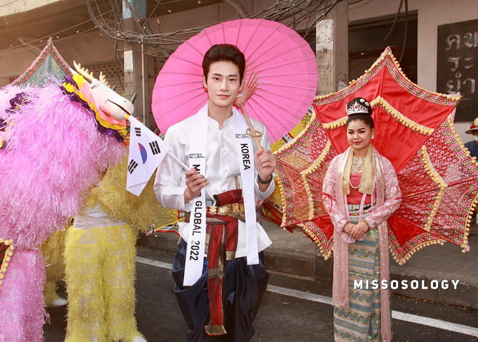 Mister Global da Córeia, Kim Hee Won, no festival das flores na Tailândia (Foto: Concurso)
