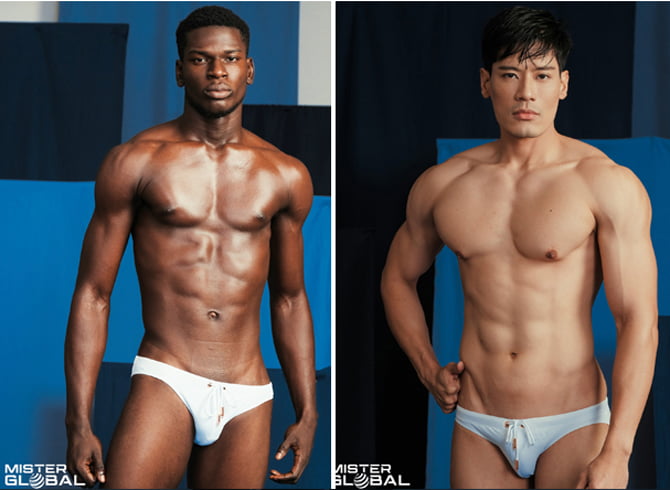 Mister Global Nigéria, Senator Isinwa e Mister Global Tailândia, Setthapan Thongsuk (Fotos: Concurso)