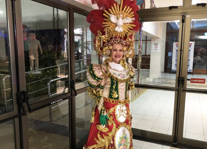 A psicóloga e carnavalesca Girlane Oliveira Arraes no Baile da Saudade do Bloco da Saudade, na AABB (Foto: Fernando Machado)