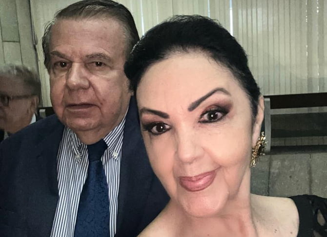 Na Escola de Guerra Naval, no Rio de Janeiro, o colunista social João Alberto Sobral e sua Sheila Wanderley (Foto: Instagram)