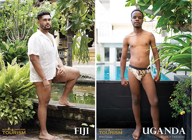 Nehal Chand de Fiji e Henrick Twesigye de Uganda concorrem hoje ao Mister Universo Turismo (Fotos: Concurso)