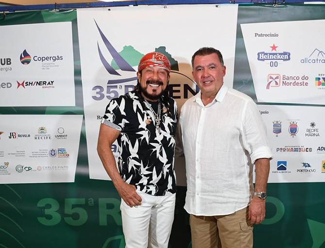 Na abertura da Refeno o cantor Bell Marques e o comodoro do Cabanga Altair Junior (Foto: Tsuey Lan Bizzocchi/Cabanga)