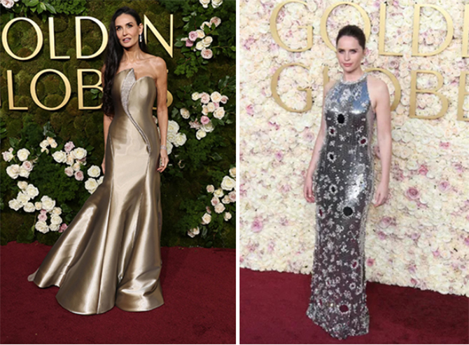 Demi Moore e Felicity Jones no tapete vermelho do Globo de Ouro (Fotos: Getty/USAToday)