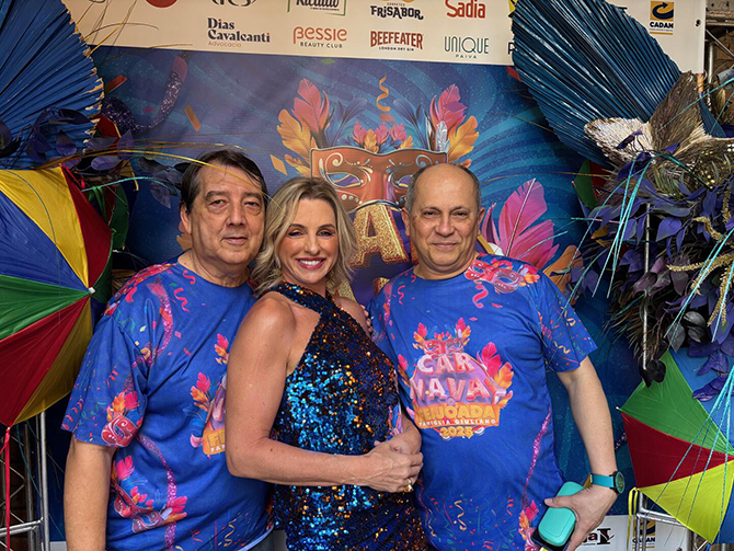 Na Feijoada de Carnaval do Famiglia Giuliano Arlindo Francisco da Silva, Tânia Konrad e Rômulo Giovannetti (Foto: Fernando Machado)