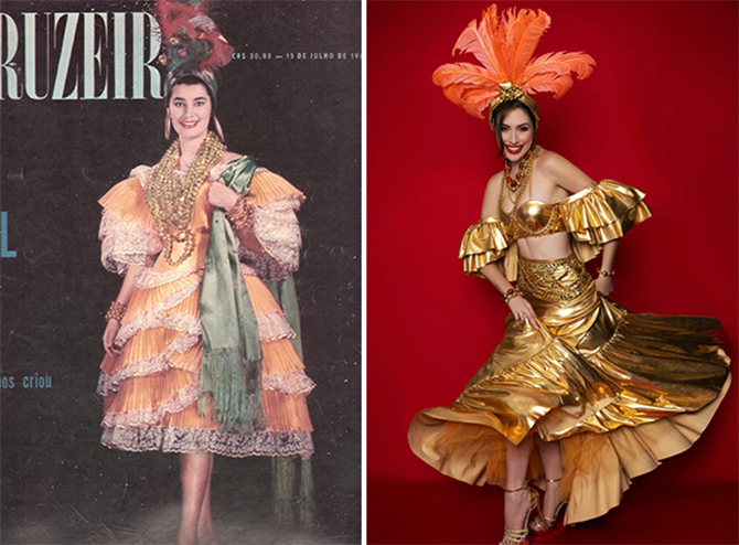 Trajes típicos de Miss Brasil Universo de 1961, Stäel Abelha e de Miss Brasil Mundo de 2025, Jessica Pedroso (Fotos: O Cruzeiro/Concurso)