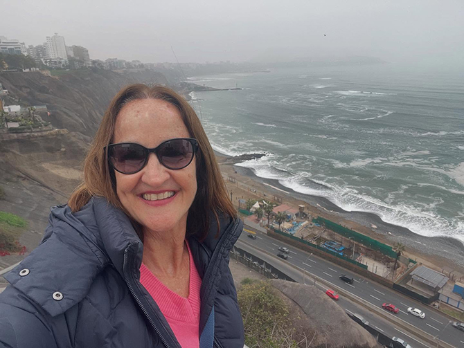 A professora Tuka Braga curtindo a cidade de Miraflores, no Peru (Foto: Face)