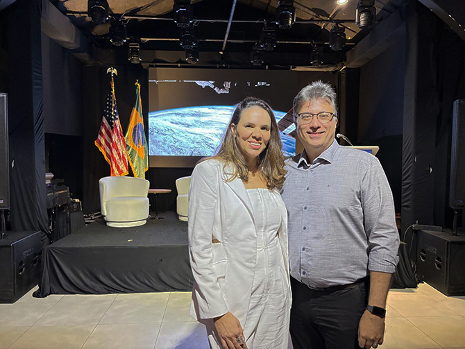 Neide Rodrigues que coordenou a parte eletrônica do Independence Day e Marcos Portela (Foto: Fernando Machado)