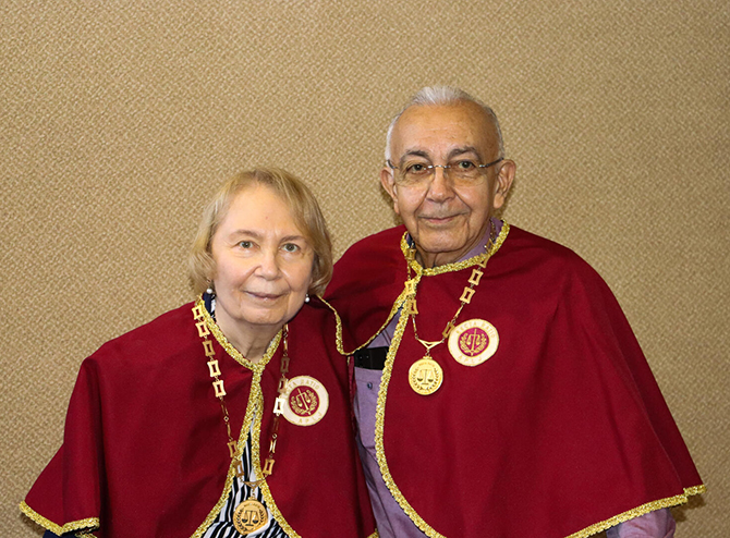 A presidente da APLJ Rosana Grinberg e o ex-presidente da entidade, o Promotor Luiz Andrade, no TRF5 (Foto: Giovanna Lacerda)