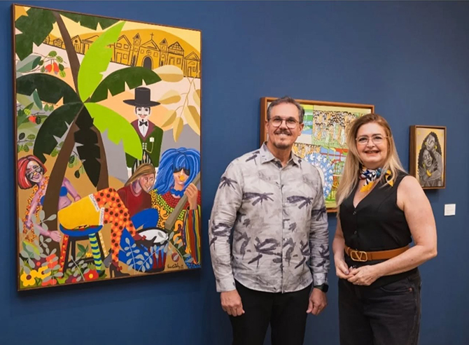 Os artistas plásticos Rinaldo Carvalho e Vania Coutinho na Exposição do IMIP (Foto: Face)