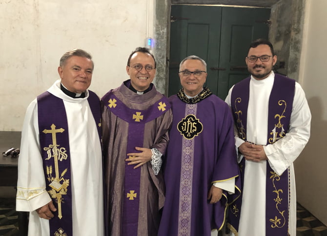 Pois foi cenário deslumbrante que Padre Cosmo recebeu a reitoria, do templo, designado pelo arcebispo de Olinda e Recife, Dom Fernando Saburido. Um detalhe: tanto o padre Cosmo como o padre Paulo Sergio Monteiro, vigário episcopal, recebiam os parabéns pelos seus 26 anos de sacerdócio. A missa foi concelebrada pelos padres Delio Mota, Valdir Cosmo e David Gonçalves