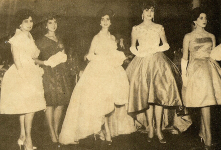 Ana Maria Bandeira de Mello, Maria Helena Campelo, Lídice Acioly, Herlanda Dantas e Janete Malho Luz no MIss Elegante Bangu (Foto: Revista Querida)