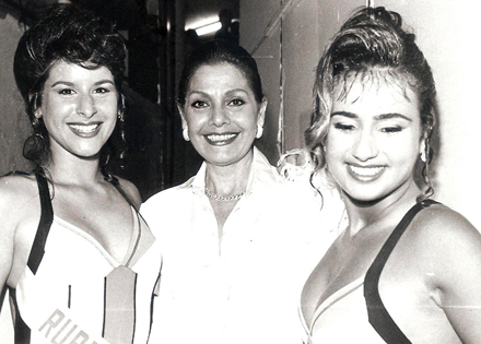 Miss Universo de 1963, Ieda Vargas ao lado de Andrea Gomes e Michelle Black na Festa dos Estudantes de 1994 (Foto: Arquivo)