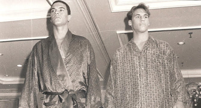 Durante desfile no Sheraton Petribu, em Piedade, os modelos Alexsandro  e Artur (Foto: Arquivo)