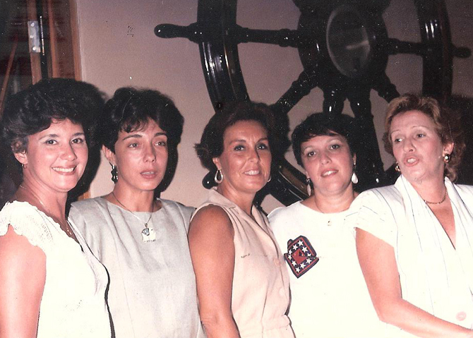 No Cabanga, dia 8 de janeiro de 1986, as senhoras Diana Pierreck Lins, Liana Amadeo, Gilka Castelo Branco Verçosa, Maria Alice de Noronha Azevedo e Carmen Lucia Sperling (Foto: Acervo do blog)