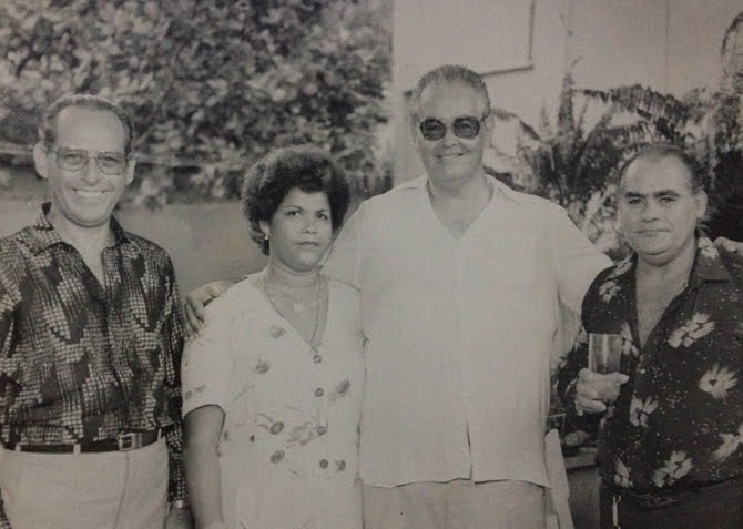 Alberto Barbosa, Lourtinha e Vladmiir Meireles com o maitre Catolé no Clube Portugues nos anos 90 (Foto: Acervo de Lourdinha Meireles)