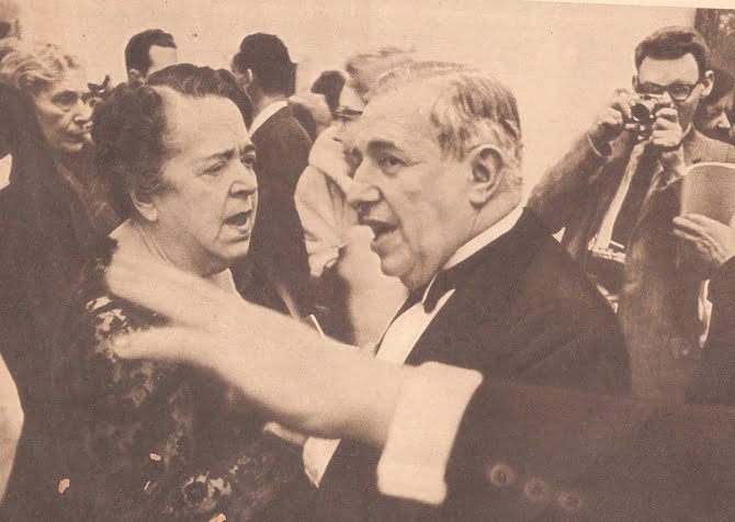 A colunista Elsa Maxwell e Assis Chateaubriand na exposição de obras do Museu de Arte Moderna de São Paulo, em Nova Iorque em abril de 1957 (Foto: O Cruzeiro)
