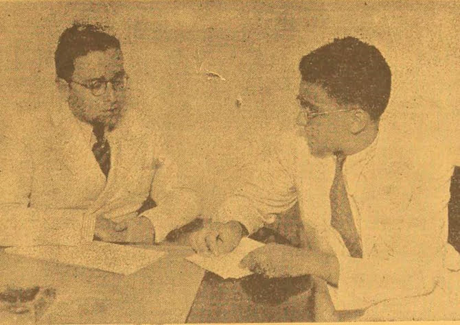 Nilo Pereira sendo entrevistado pelo jornalista José Cesar Borba em outubro de 1937 (Foto: Diário da Manhã)
