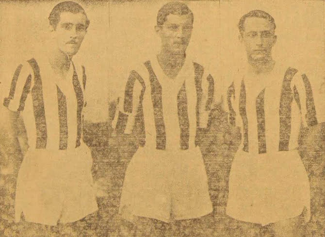 Os irmãos Carvalheira Fernando, Zezé e Arthur, jogadores do Náutico, em julho de 1934 (Foto: Diário da Manhã)
